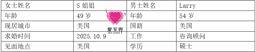 10月9日見面那天,當S姐姐不再聊那些經濟內容,Larry反而主動分享了特別多故事:他講到自己以前當兵修飛機的經歷,還不慎受過傷;得知S姐姐在國內讀的是醫學護理專業後,他眼中流露出十足的欣賞,紳士地伸出手,幽默地説:“讓我感受一下護理專家的手勁。”這恰到好處的親近,讓相處的氛圍更加輕鬆融洽了。